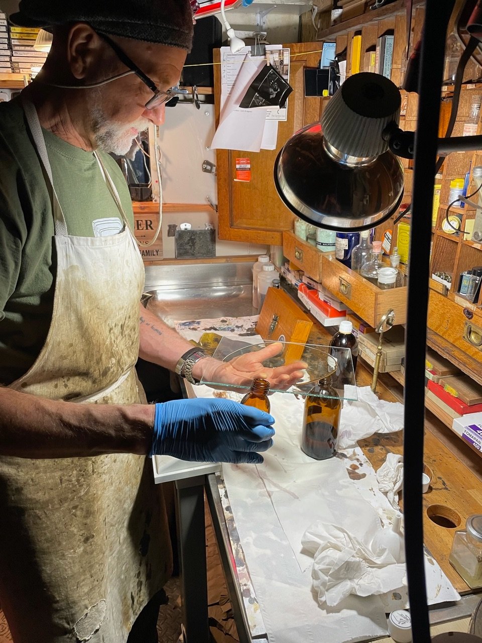 Sessions take a minimum of two hours, offering a truly immersive experience. You get to witness the entire process, including the unforgettable moment of watching your portrait appear through the fog of the fixative under the red safelight.